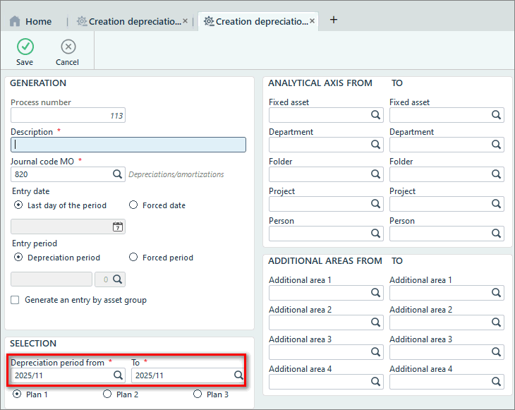Il est désormais possible de générer les OD d'amortissement directement sur plusieurs périodes.
