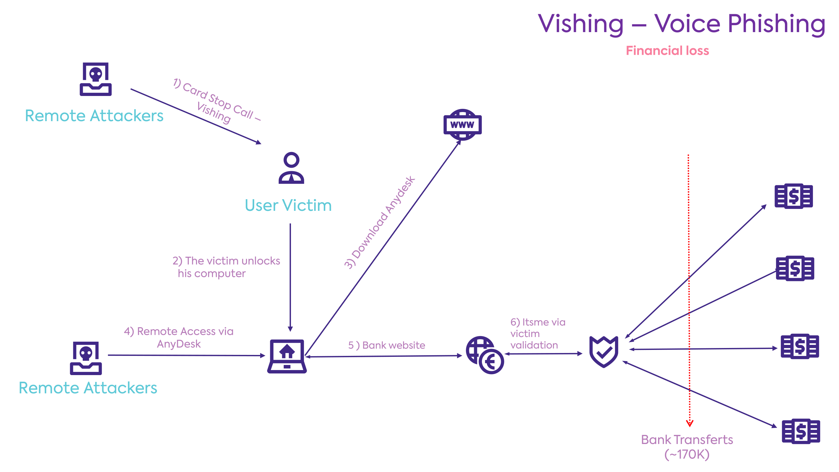 Denk hierbij aan overname van Microsoft 365-accounts, misbruik van VPN- of cloudtoegang of laterale beweging binnen de organisatie.